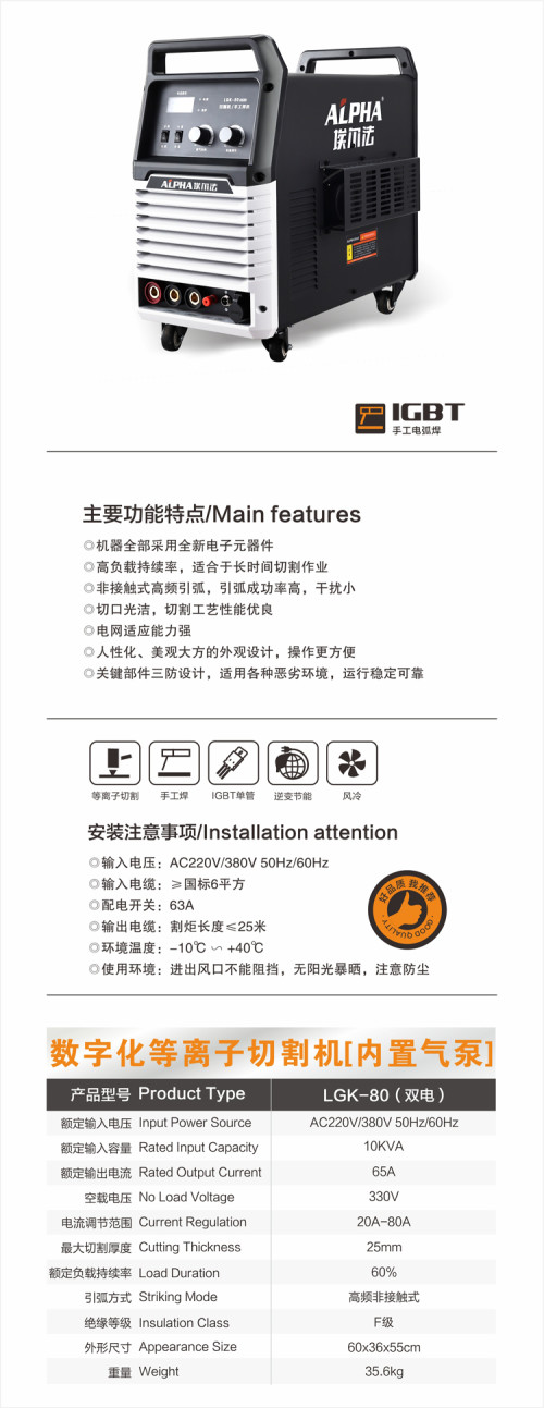 埃尔法/等离子弧切割机(内置)/LGK-80双电压 LGK-80双电压(双用带电焊)