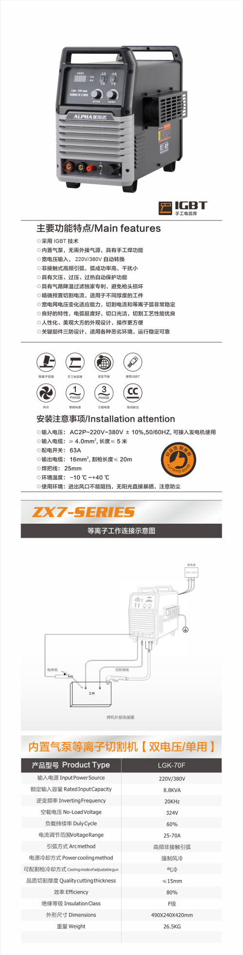 埃尔法/等离子弧切割机(内置)/LGK-70F双电压 LGK-70F双电压(双用带电焊)