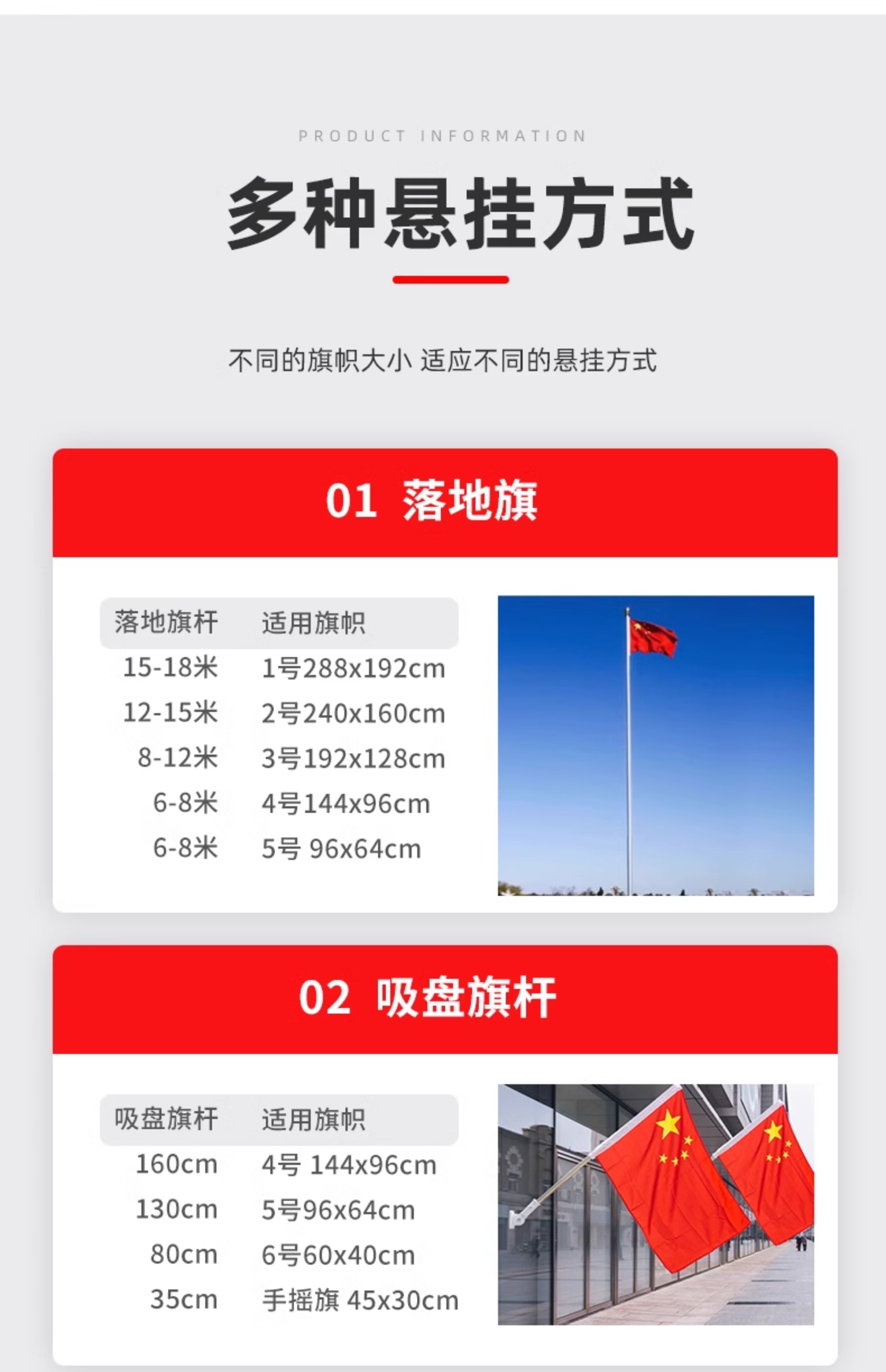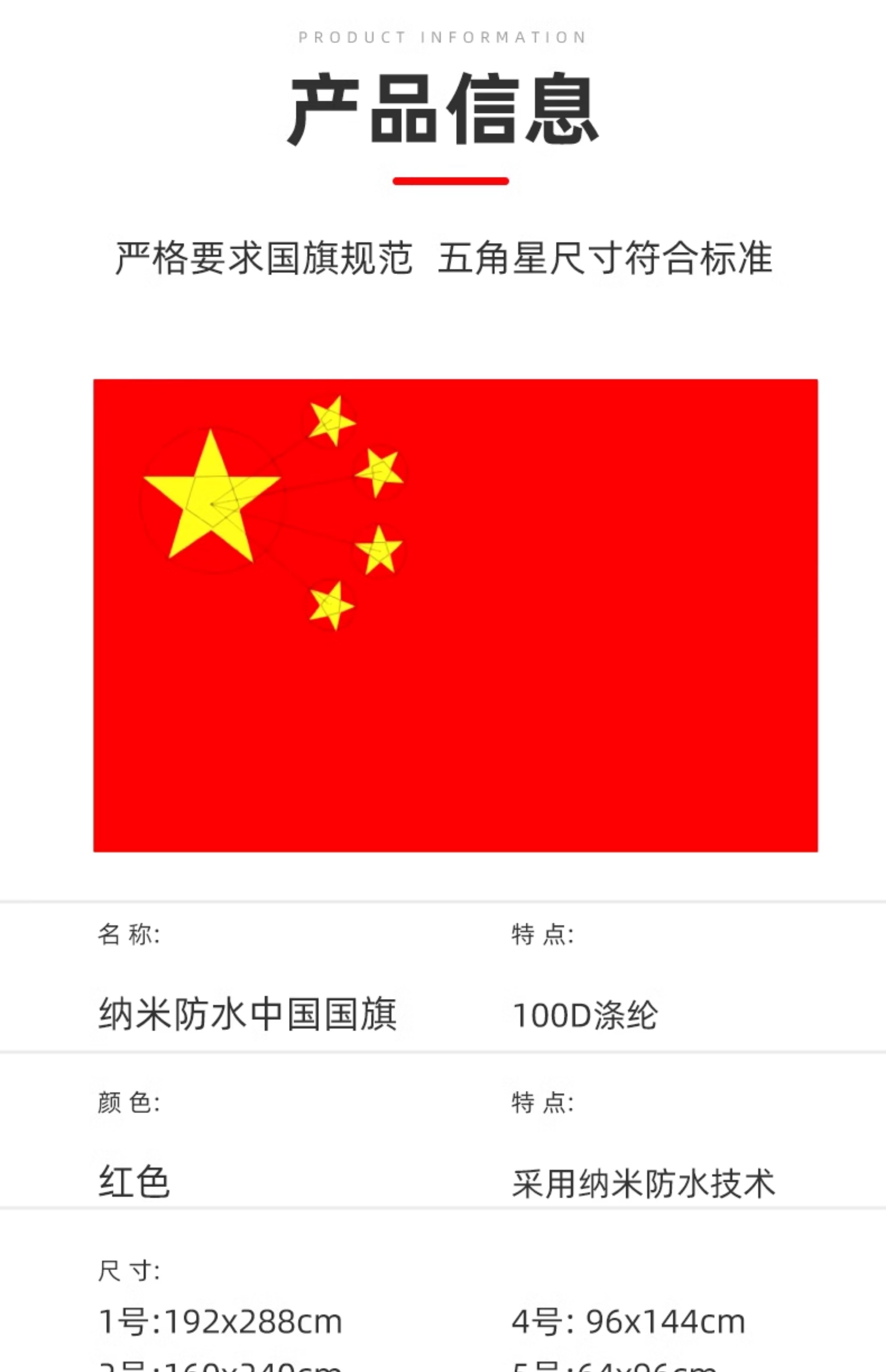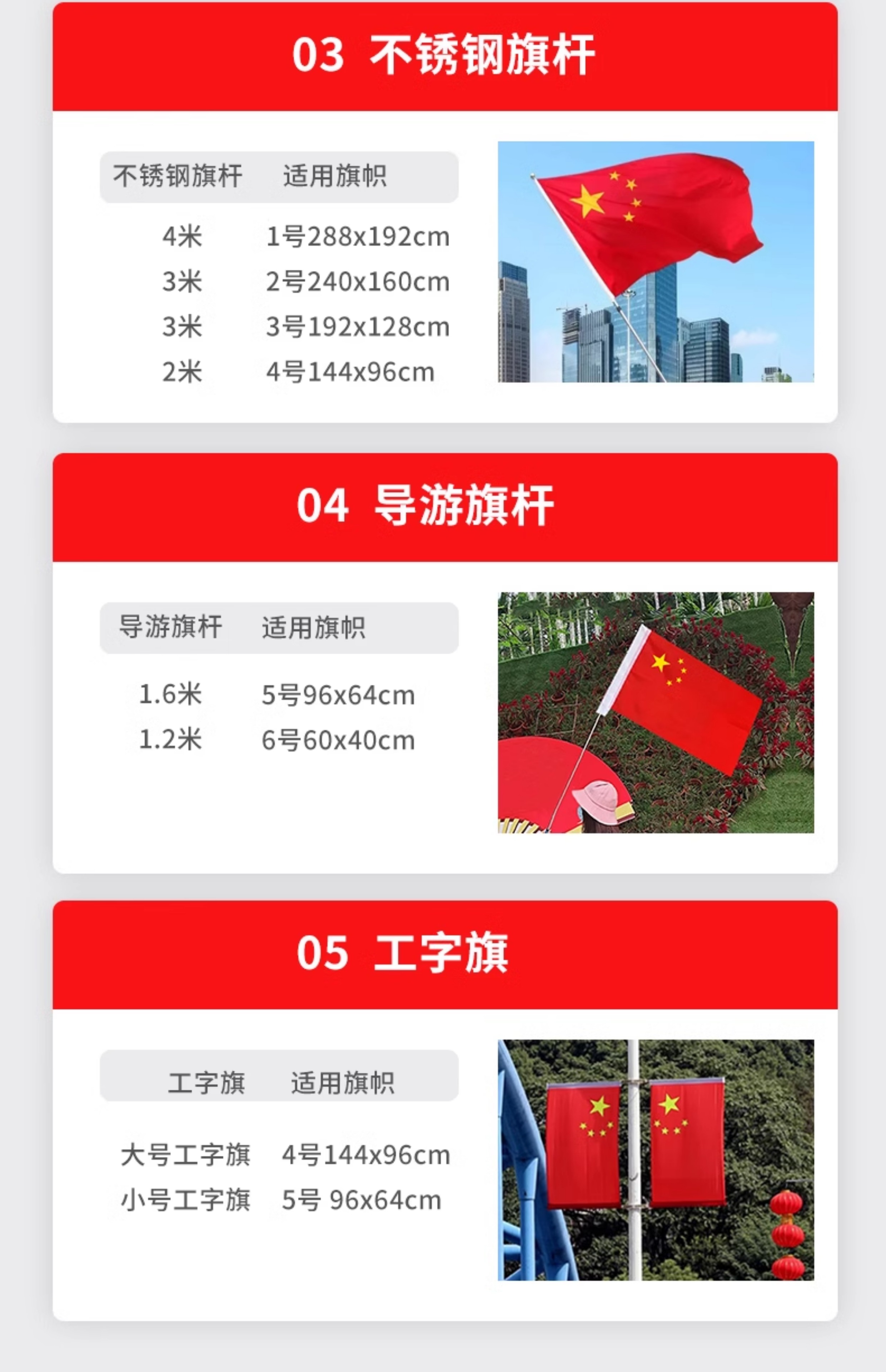 中国国旗五星红旗户外1号2号3号4号5号6号国旗大号纳米防水防晒道具装饰批发旗子定制手持带旗杆旗帜定做加厚