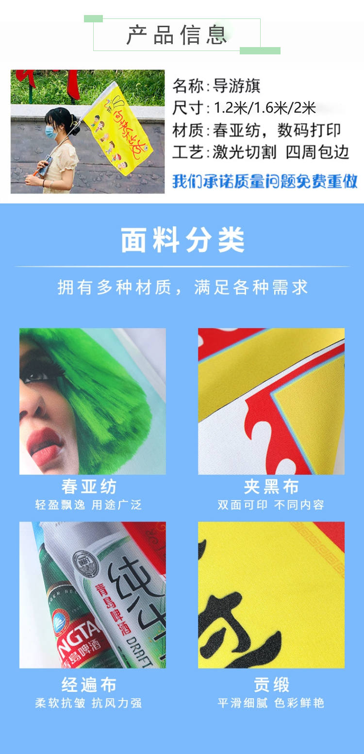 导游旗防水防嗮不掉色,锁边工艺,结实耐用,品质工艺,做工严谨,品质保障,闪电发货