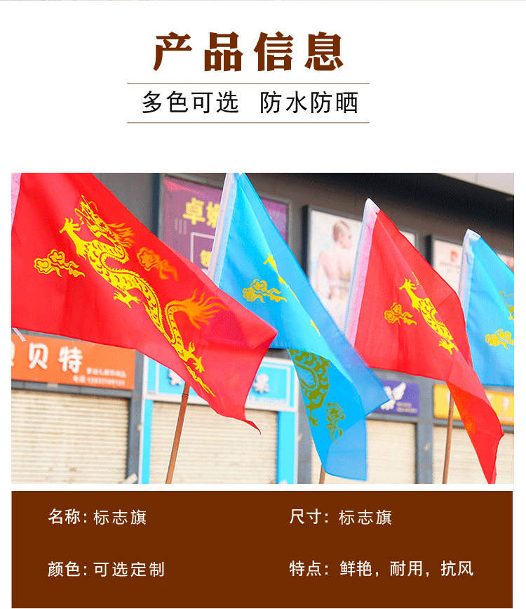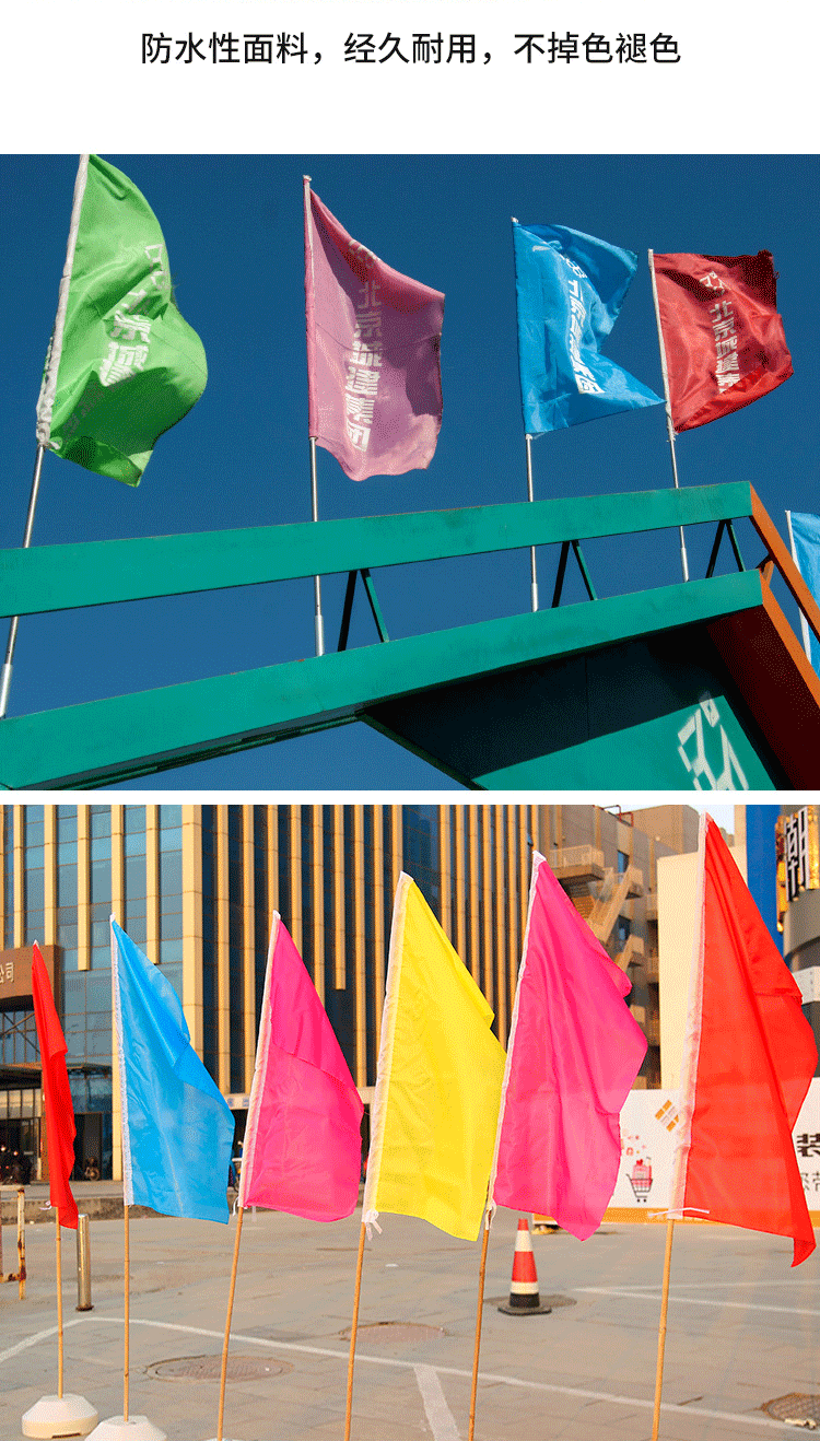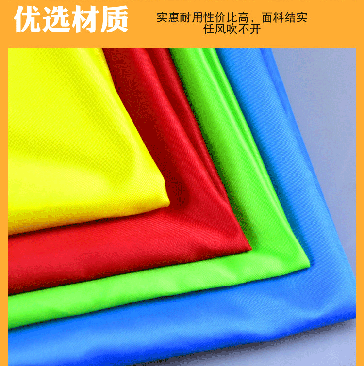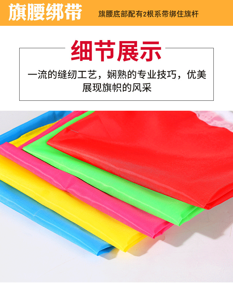 一流的缝纫工艺、娴熟的专业技巧、优美的展现旗帜的风采、光滑细腻、色彩鲜艳、防水防嗮、不褪色