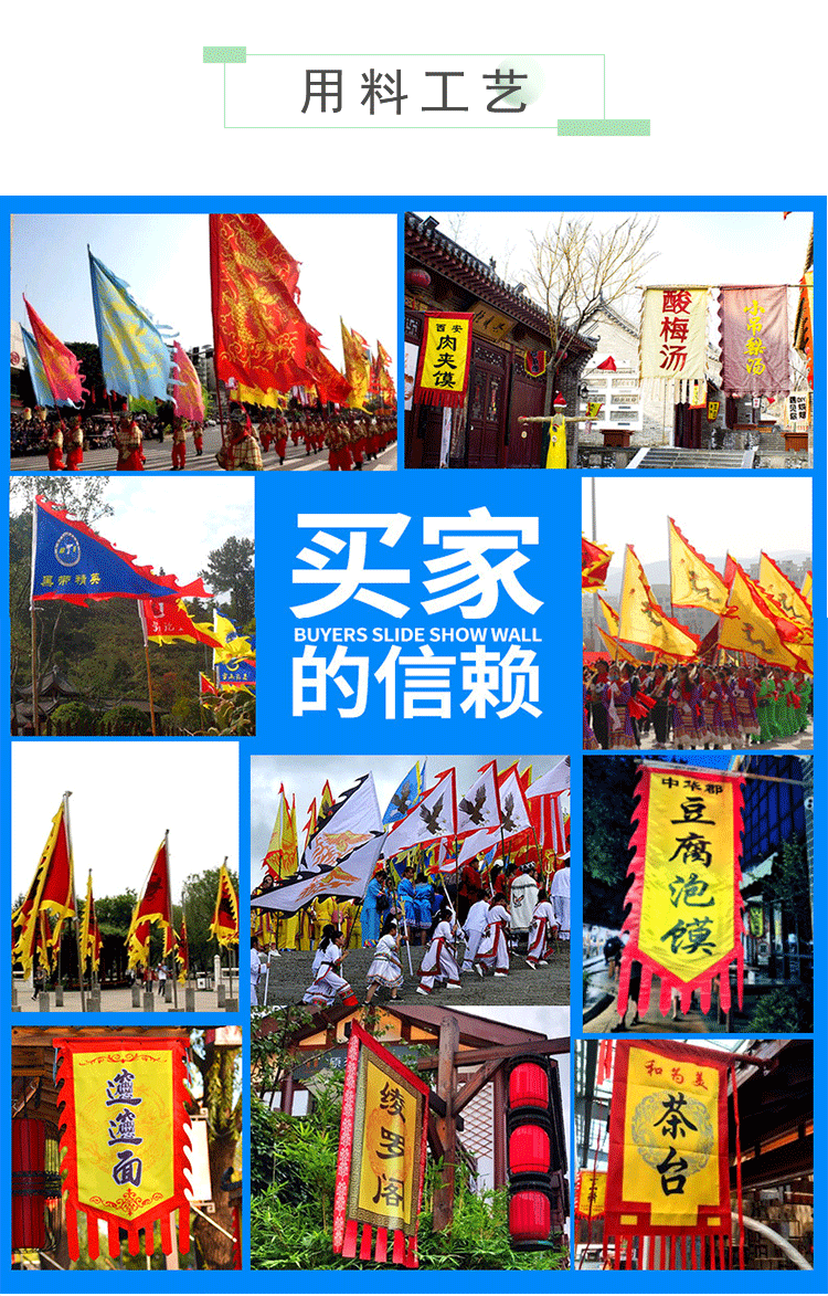 个性定制、水洗不变色、颜色亮丽、用途广泛、景区、古镇、茶楼、演出、拜祖、节日、影视拍摄、庆典等古风气氛渲染