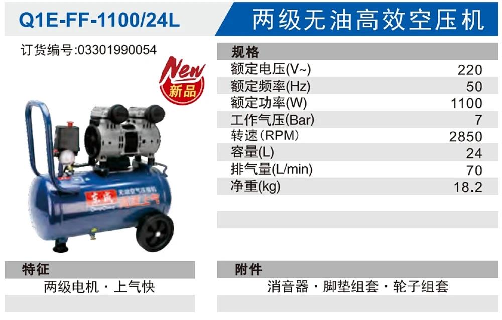 东成/无油高效空压机/Q1E-FF-1100/24LQ1E-