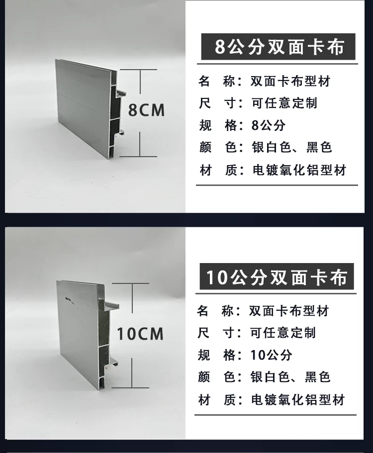 8-10-12公分/卡布型材双面/双面软膜灯箱型材/软膜卡布灯箱铝型材/灯箱型材