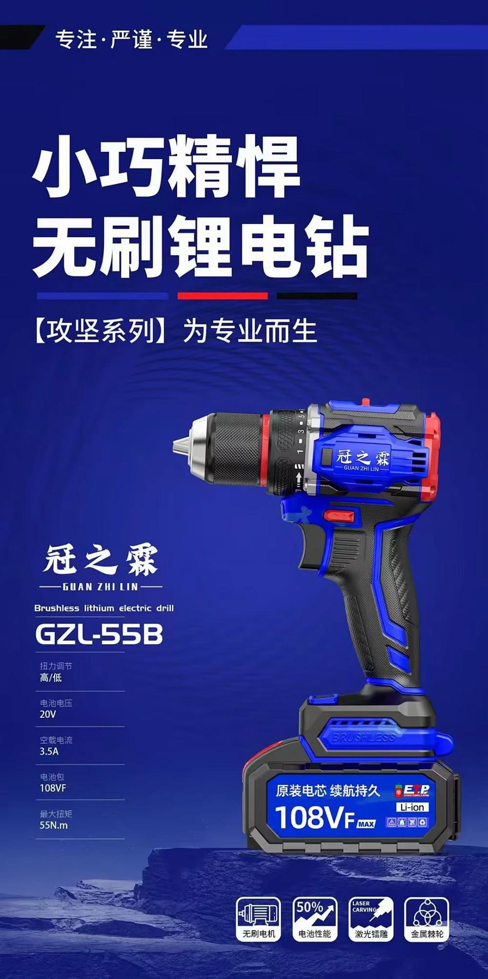 冠之霖108V无刷锂电钻(55N.m))108V锂电