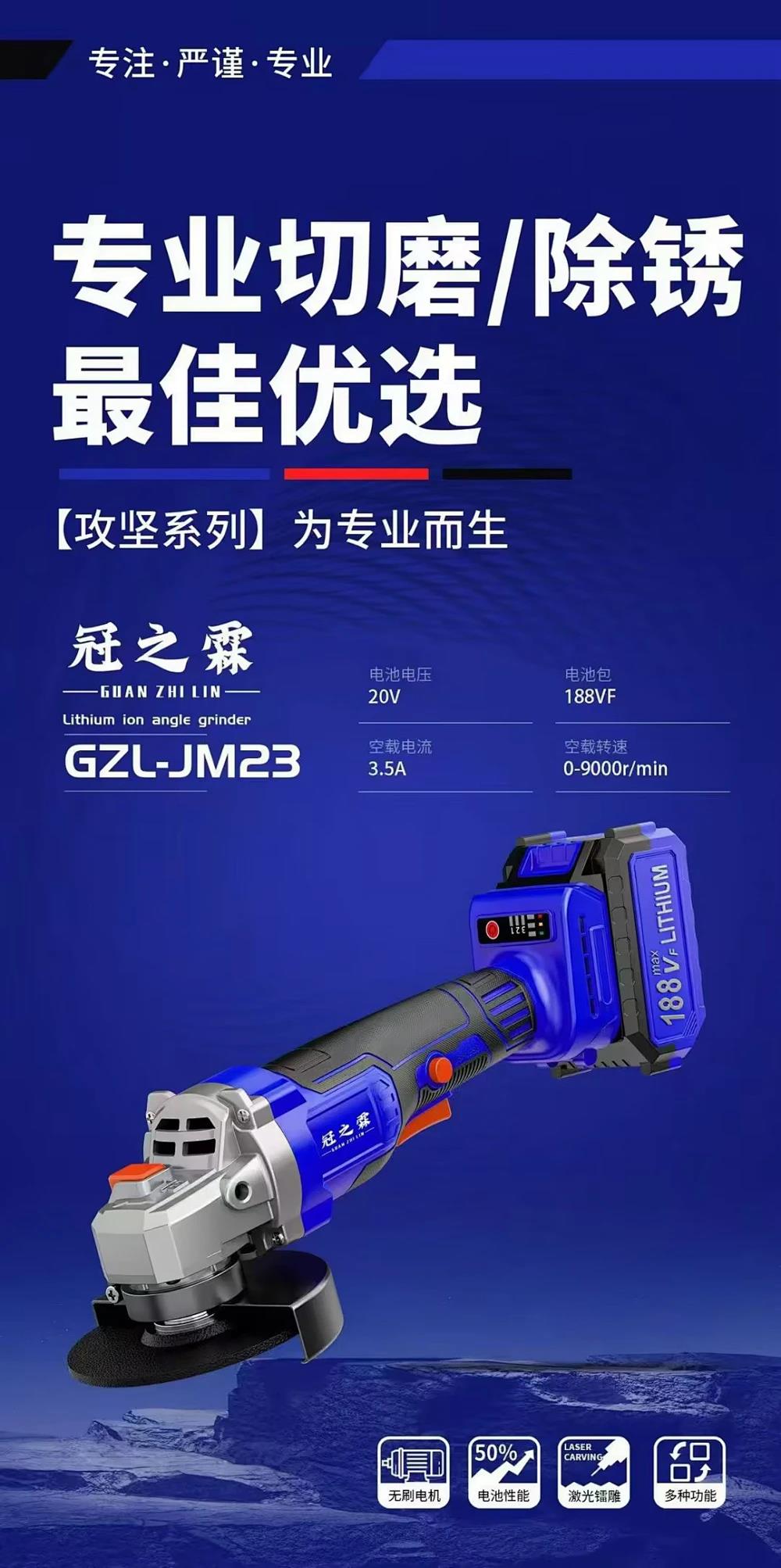 冠之霖188V无刷锂电充角磨机(9000r/min)